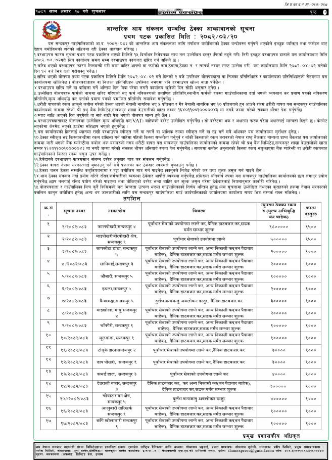 आन्तरिक आय संकलन सम्बन्धि ठेक्का आव्हावानको सूचना
