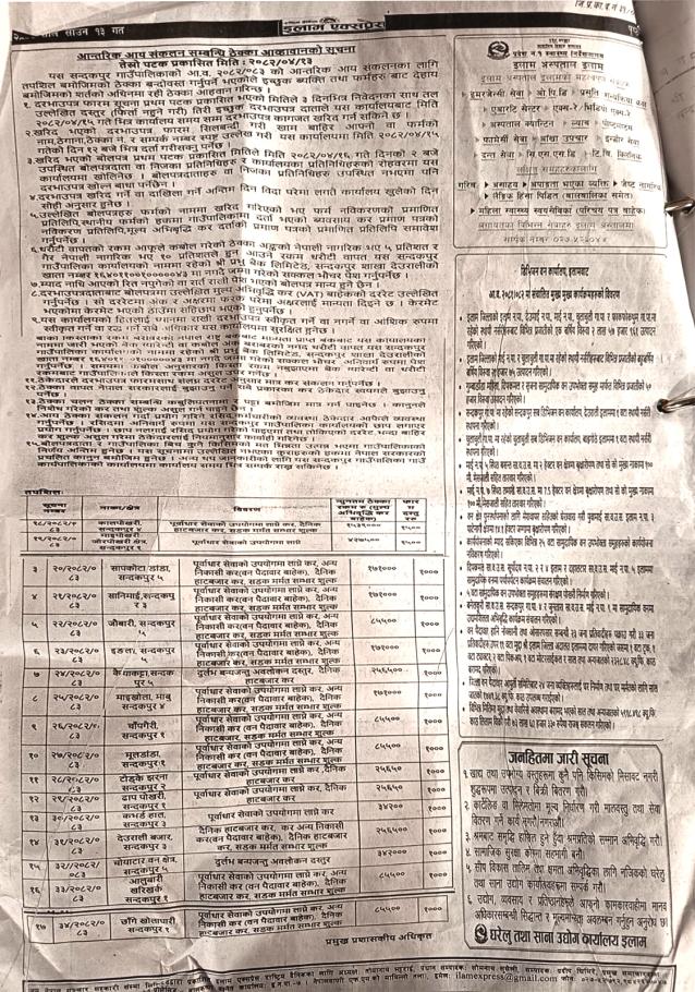 आन्तरिक आय संकलन सम्बन्धि ठेक्का आव्हावानको सूचना तेसो पटक प्रकासित मिति : २०८२/०४/१३