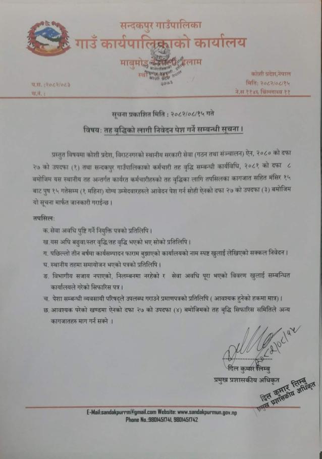 तह बृद्धिको लागी निवेदन पेश गर्ने सम्बन्धी सूचना।