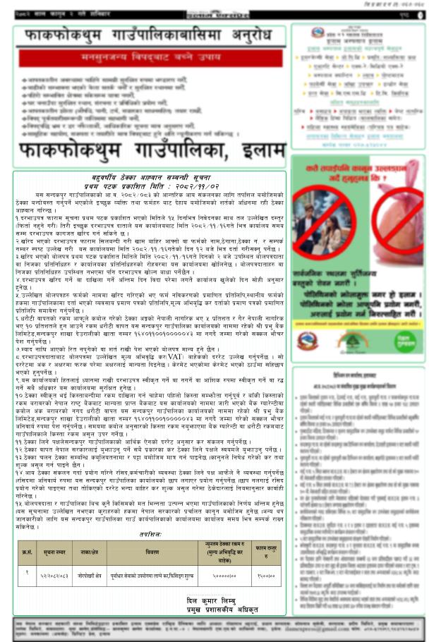 बहुवर्षीय ठेक्का आह्वान सम्बन्धी सूचना प्रथम पटक प्रकाशित मिति : २०८२/११/०२